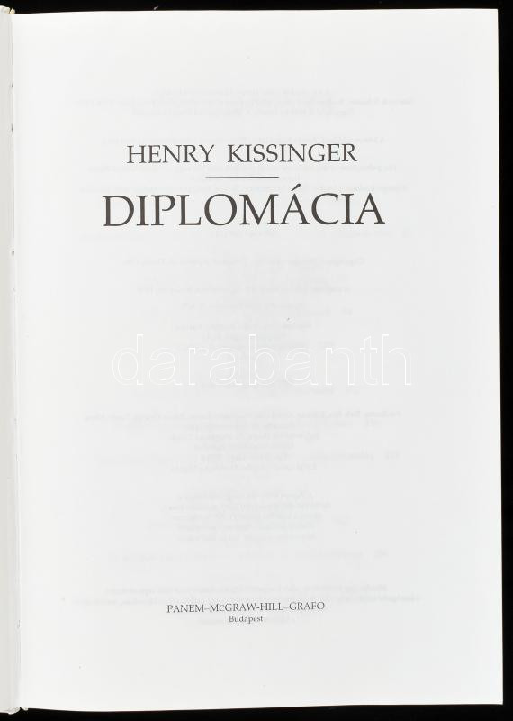 Henry Kissinger: Diplomácia. Bp., 1996, Panem - McGraw-Hill - Grafo. K... https://www.darabanth.com/hu/436-Gyorsarveres/436.0/Konyvek/Konyvek-Tortenelem~1000009/Henry-Kissinger-Diplomacia-Bp-1996-Panem-McGraw-Hill-Grafo-Kiadoi-kartonalt-papirkotC3~II2825991