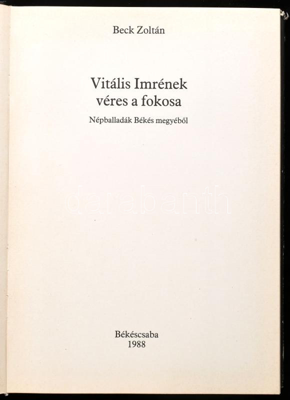 Beck Zoltán: Vitális Imrének véres a fokosa. Népballadák Békés megyébő... https://www.darabanth.com/hu/436-Gyorsarveres/436.0/Konyvek/Konyvek-Utazas-helytortenet~1000005/Beck-Zoltan-Vitalis-Imrenek-veres-a-fokosa-Nepballadak-Bekes-megyebol-Fekete-konyvek-k~II2781739