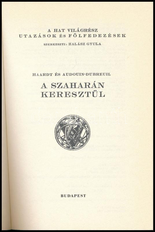 G. M. Haardt - L. Audouin-Dubreuil: A Szaharán keresztül. A sivatag elsÅ‘ átszelése citroen - automobilon (Touggourttól Timbuktuig.) Ford.: Ballengger Róbertné és Ballengger Henrik. A hat világrész - utazások és fölfedezések az Enciklopédia Kiadó reprint sorozata. Bp., 2006., Enciklopédia Kiadó. Kiadói papÃrkötés.