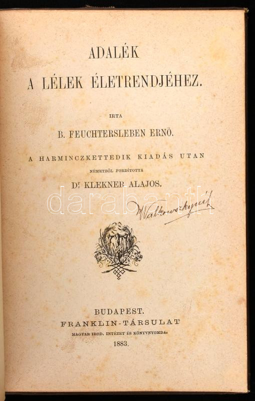 B. Feuchtersleben Ernő: Adalék a lélek étrendjéhez. Bp., 1883, Frankli... https://www.darabanth.com/hu/436-Gyorsarveres/436.0/Konyvek/Konyvek-Vallas~1000019/B-Feuchtersleben-Erno-Adalek-a-lelek-etrendjehez-Bp-1883-Franklin-Kiadoi-egeszvaszon-~II2830200