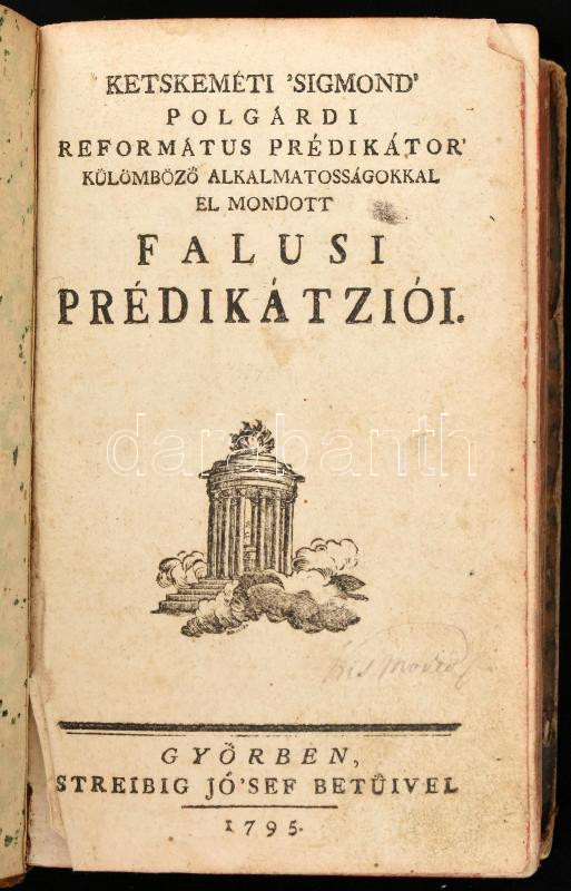[Kecskeméti] - Ketskeméti Sigmond polgárdi református prédikátor külömböző alkalmatosságokkal el mondott falusi prédikátziói. Győrben, 1795, Streibig. [22], 671, [1] l. Korabeli, kissé sérült félbőr-kötésben.