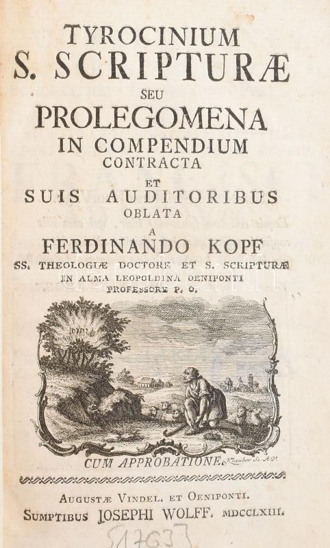 Kopf, Ferdinando.: Tyrocinium S. Scripturae seu prolegomena in compend... https://www.darabanth.com/hu/436-Gyorsarveres/436.0/Konyvek/Konyvek-Vallas~1000019/Kopf-Ferdinando-Tyrocinium-S-Scripturae-seu-prolegomena-in-compendium-Augsburg-1763-Joseph-Wolf~II2831143
