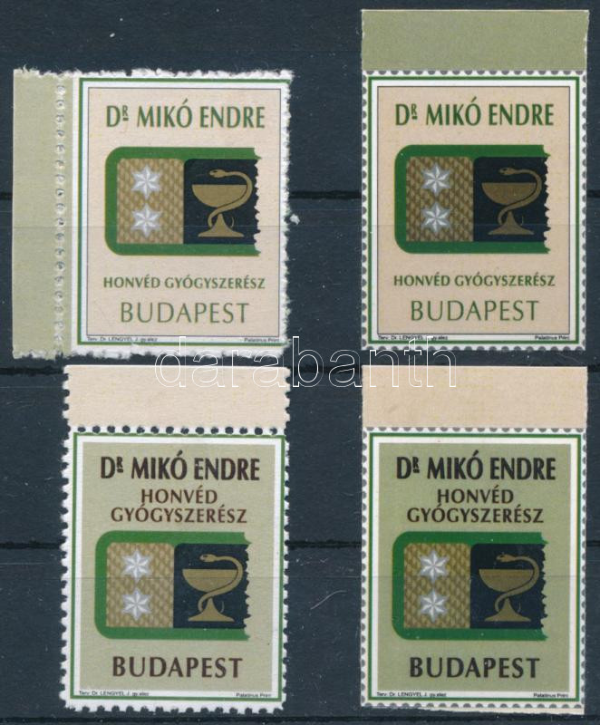 Leírás: 2010 Dr Mikó Endre honvéd gyógyszerész 4 db levélzáró bélyeg