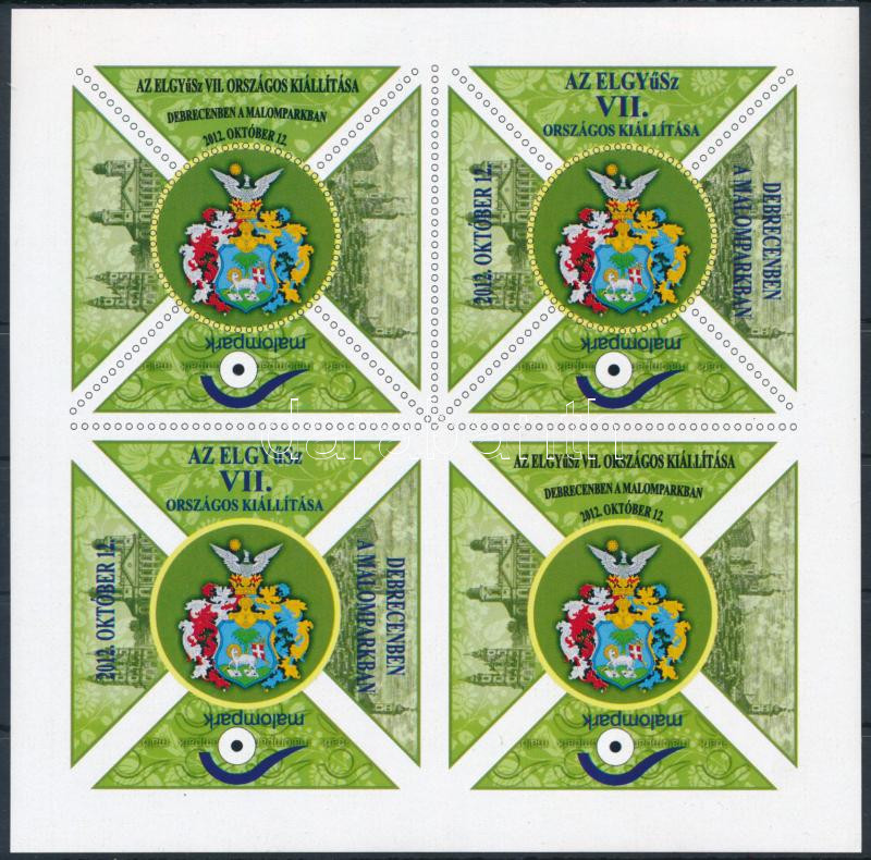 2012 ELGYÜSZ VII. országos kiállítás, Debrecen vágott 4-es kisív https://www.darabanth.com/hu/436-Gyorsarveres/436.0/Magyar-filatelia-es-postatortenet/Parafilatelia~500016/2012-ELGYUSZ-VII-orszagos-kiallitas-Debrecen-vagott-4-es-kisiv~II2826285
