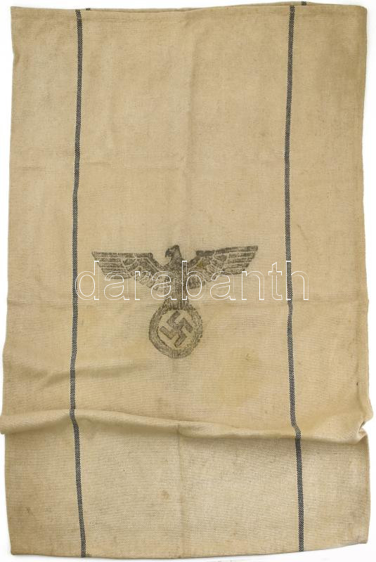 Juta vászon zsák horogkeresztes pecséttel 1944 II. Verpfl. 68x96 cm https://www.darabanth.com/hu/436-Gyorsarveres/436.0/Mutargy-papirregiseg-egyeb/Bolhapiac~500012/Juta-vaszon-zsak-horogkeresztes-pecsettel-1944-II-Verpfl-68x96-cm~II2832934