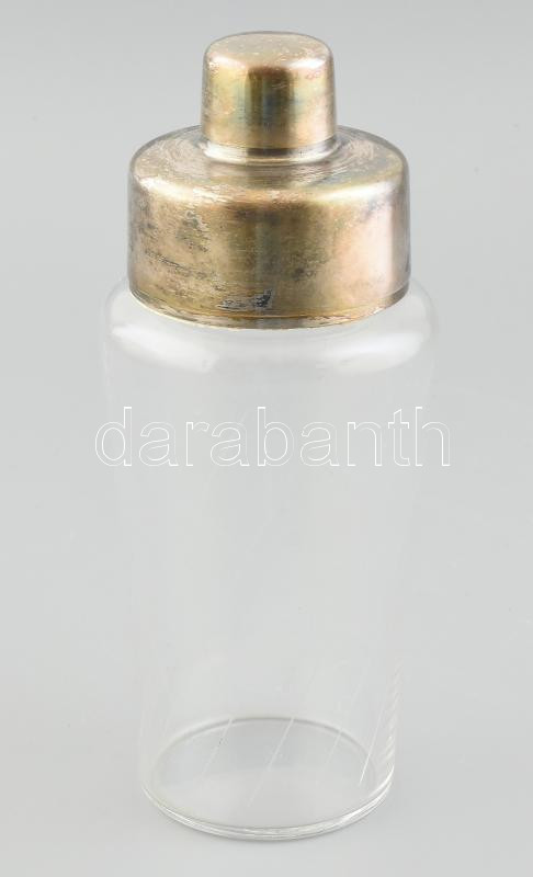 Leírás: Shaker. Ezüstözött tetejű fém, üveg, hibátlan, m: 21 cm