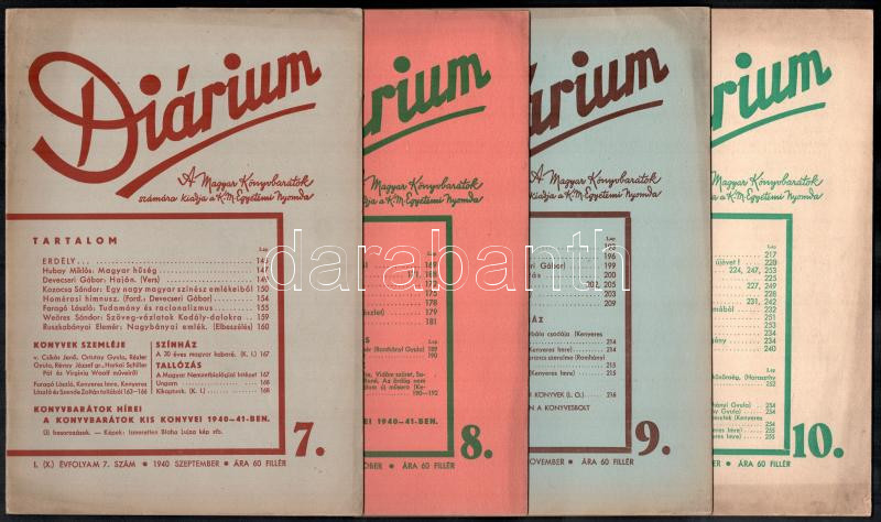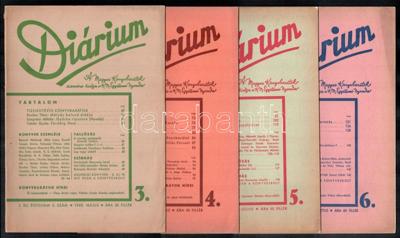 1940 Diárium folyóirat 3-10. száma. https://www.darabanth.com/hu/436-Gyorsarveres/436.0/Mutargy-papirregiseg-egyeb/Nyomtatvanyok~1000003/1940-Diarium-folyoirat-3-10-szama~II2826461