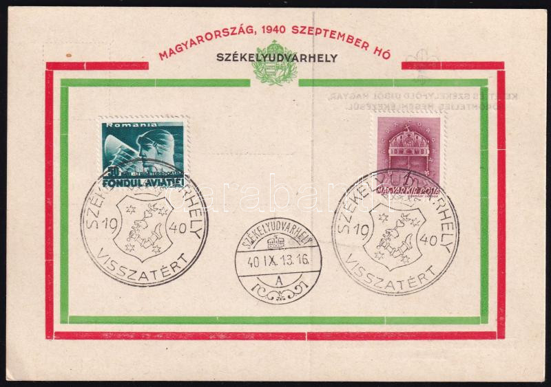 Leírás: 1940 Székelyudvarhely visszatért emléklap alkalmi bélyegzéssel