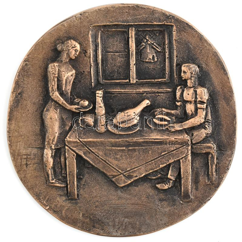 Leírás: Tóth Béla (1941-2022) Munkácsy Mihály-díjas szobrászművész és éremművész, ,,a lovak szobrásza": Ebéd. Bronz plakett, jelzett, d: 11 cm