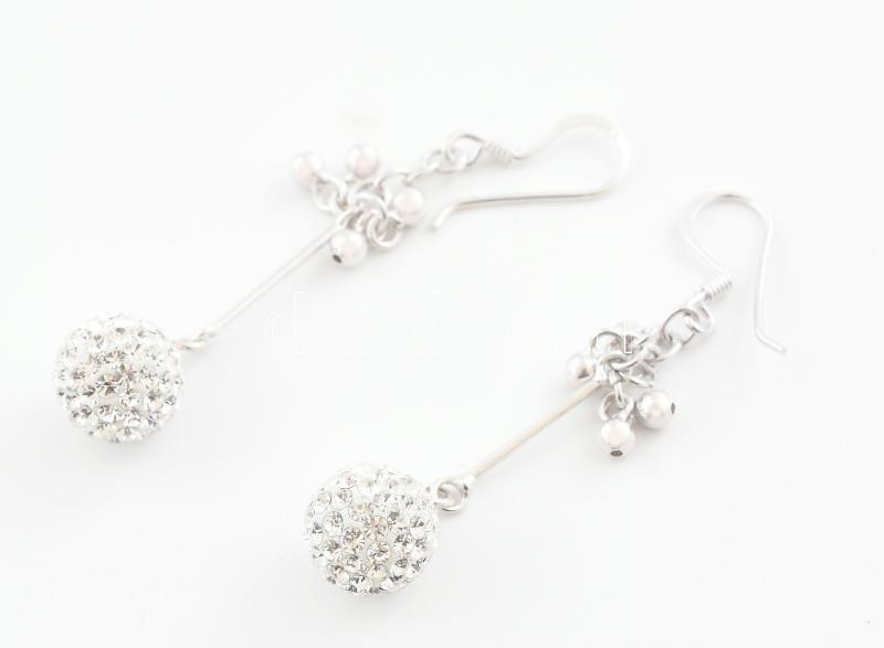 Leírás: Ezüst(Ag) fülbevalópár chamballa gyöngy díszítéssel, jelzett, h: 3,5 cm, bruttó: 3,6 g