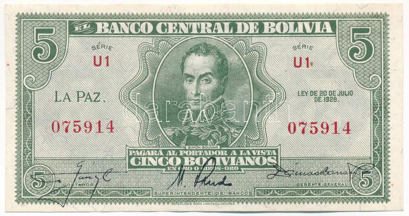 Boli... https://www.darabanth.com/hu/436-Gyorsarveres/436.0/Numizmatika/Kulfoldi-bankjegyek~2500001/Bolivia-1928-5B-U1-075914-II-kiadas-TI-apro-folt-Bolivia-1928-5-Bolivianos-U1-075914-2n~II2833475