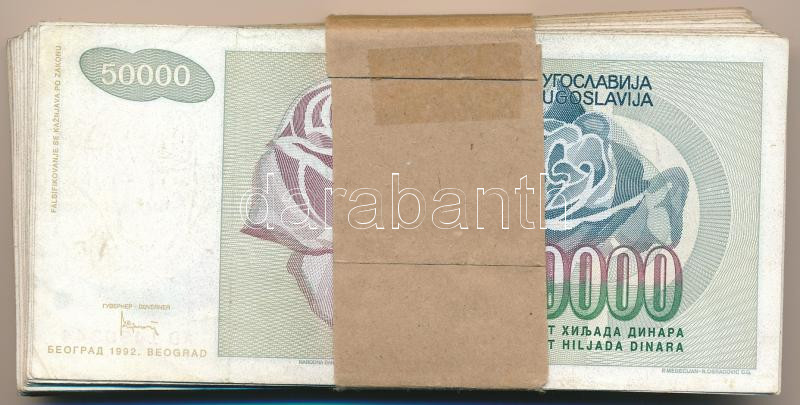 Leírás: Jugoszlávia 1992. 50.000D (92x) nem eredeti kötegelővel T:III,III-