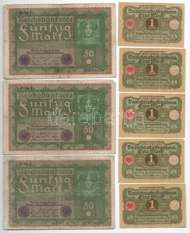 Német Birodalom 1919. 50M (3x) + 1920. 1M (5x) közte sorszámkövető párok T:I--III- közte folt, kis szakadás