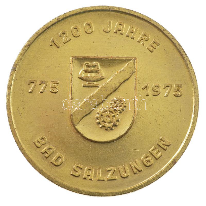 Német Demokratikus Köztársaság 1975. "Volkssolbad / Bad Salzungen 1200 éves" kétoldalas aranyozott fém emlékérem (40mm) T:1- German Democratic Republic 1975. "Volkssolbad / Bad Salzungen 1200 years" two-sided gold-plated metal commemorative medallion (40mm) C:AU
