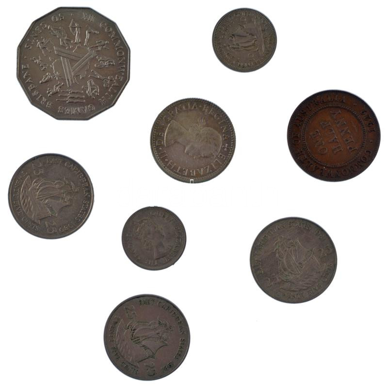 Leírás: Ausztrália 1929. 1/2p bronz "V. György" + 1Sh Ag "II. Erzsébet" + 1982. 50c Cu-Ni "XII. Nemzetközösségi Játékok - Brisbane" + Kelet-Karibi Államok 1956-1989. 10c-25c "II. Erzsébet" (5db, 4xklf) T:1--2-