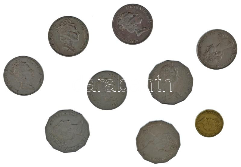 Leírás: Ausztrália 1970-1995. 20c-2$ (8db, közte forgalmi emlékpénzek) + Új-Zéland 1986. 20c Cu-Ni "II. Erzsébet" T:1--2-