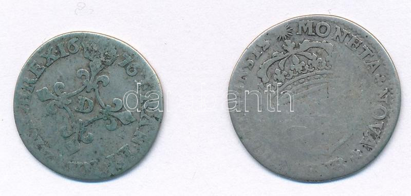 Franciaország 1676D 4S Ag "XIV. Lajos" Lyon (1,56g) + "XIV Lajos - Moneta Nova" rossz tartású Ag érme (2,71g) T:3-4 France 1676D 4 Sols Ag "Louis XIV" Lyon (1,56g) + "Louis XIV - Moneta Nova" Ag coin in bad condition (2,71g) C:F-G Krause KM# 232.2