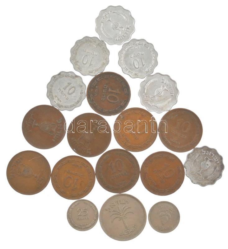 Leírás: Izrael ~1940. 18db vegyes fémpénz, közte 1949. 10p bronz (9x) T:2-3
