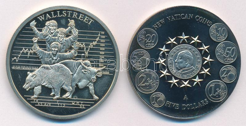 Leírás: Libéria 2000. 5D Cu-Ni "Wall Street" kapszulában + 2004. 5D Cu-Ni "Új vatikáni érmék" kapszulában T:PP