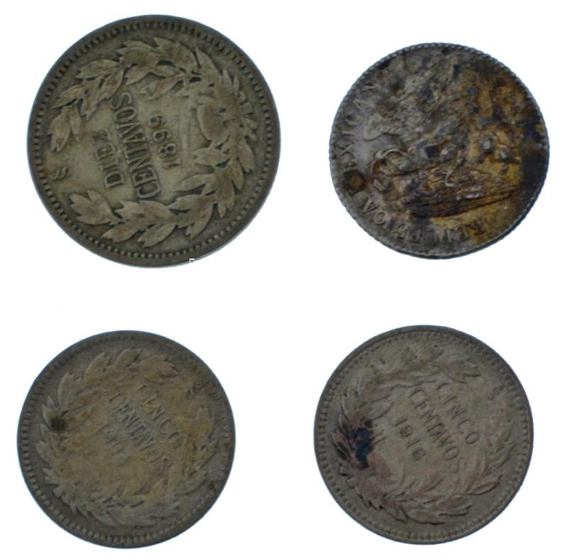 Leírás: Mexikó 1872. 5c Ag + Chile 1899. 10c Ag + 1906-1916. 5c Ag (2xklf) T:2,2- patina, közte lyuk