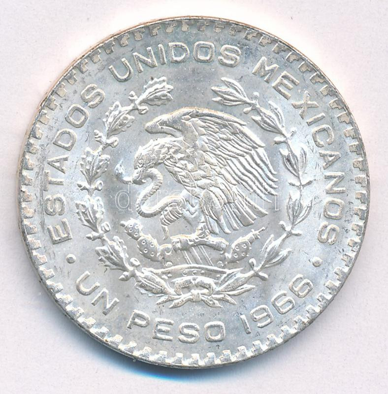 Leírás: Mexikó 1966. 1P Ag T:1-,2 Mexico 1966. 1 Peso Ag C:AU,XF Krause KM#459