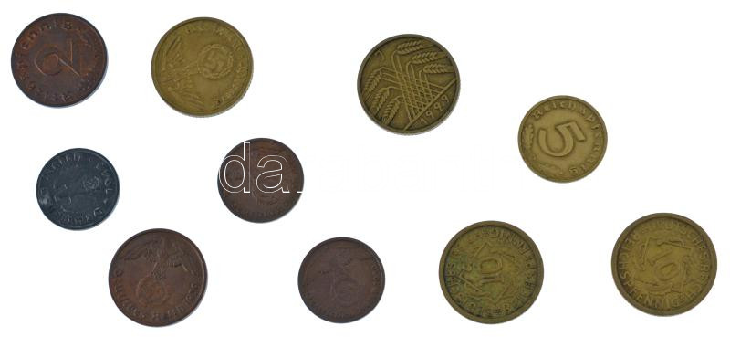 German Empire 19... https://www.darabanth.com/hu/436-Gyorsarveres/436.0/Numizmatika/Kulfoldi-fem-es-ezustpenzek~2500002/Nemet-Birodalom-1929-1943-1pf-10pf-10xklf-T1-2--German-Empire-1929-1943-1-Reichspfennig-10~II2835462