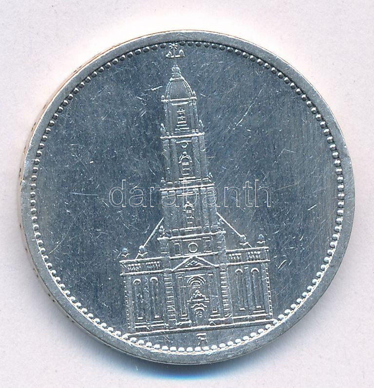 Német Harmadik Birodalom 1935A 5M Ag "Náci hatalom első évfordulója / Potsdami Garrison templom" T:2 ph. German Third Reich 1935A 5 Mark Ag "The 1st Anniversary of Nazi rule / Potsdam Garrison Church" C:XF edge error Krause KM#83