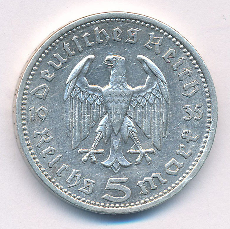 Német Harmadik Birodalom 1935A 5M Ag "Paul von Hindenburg" T... https://www.darabanth.com/hu/436-Gyorsarveres/436.0/Numizmatika/Kulfoldi-fem-es-ezustpenzek~2500002/Nemet-Harmadik-Birodalom-1935A-5M-Ag-Paul-von-Hindenburg-T1-2-German-Third-Reich-1935A-5-Reichs~II2807663