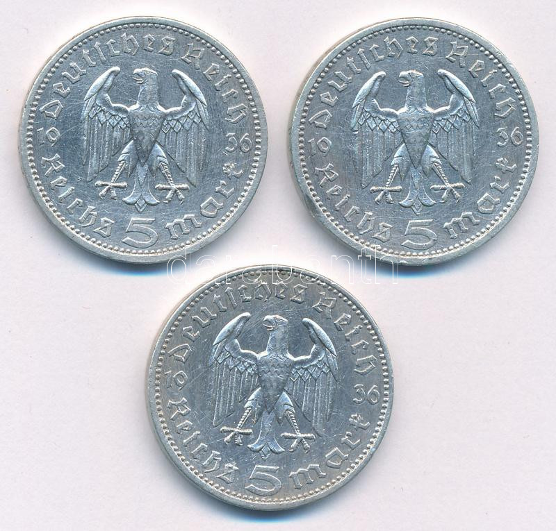 Leírás: Német Harmadik Birodalom 1936A 5M Ag "Hindenburg" (3x) T:2,2- German Third Reich 1936A 5 Reichsmark Ag "Hindenburg" (3x) C:XF,VF Krause KM# 86