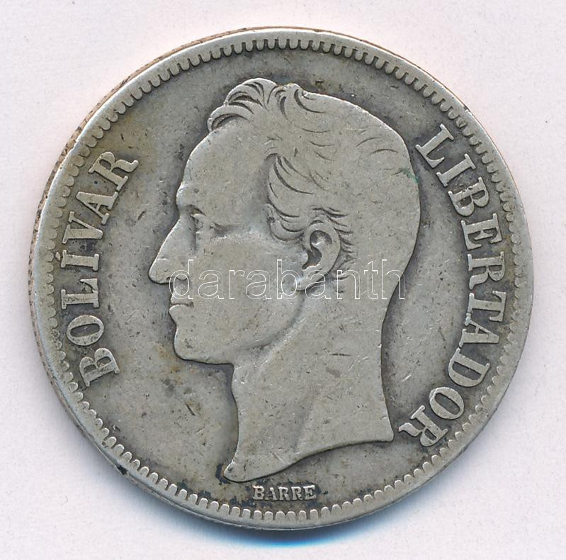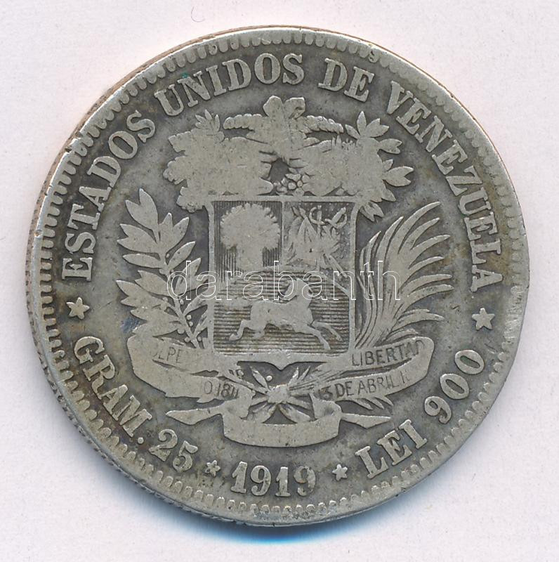 Venezuela 1919. 5 Bolivares Ag C:F edge ... https://www.darabanth.com/hu/436-Gyorsarveres/436.0/Numizmatika/Kulfoldi-fem-es-ezustpenzek~2500002/Venezuela-1919-5B-Ag-T3-ph-Venezuela-1919-5-Bolivares-Ag-CF-edge-error~II2827409