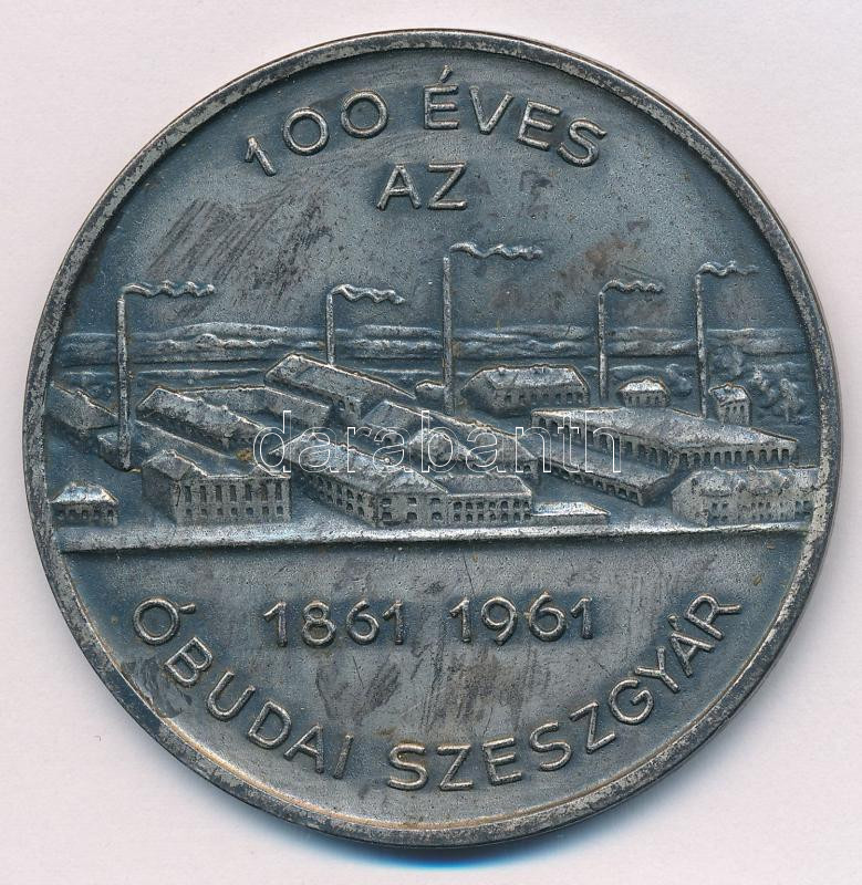 Leírás: 1961. "100 éves az Óbudai Szeszgyár" ezüstpatinázott fém emlékérem (60mm) T:2 patina
