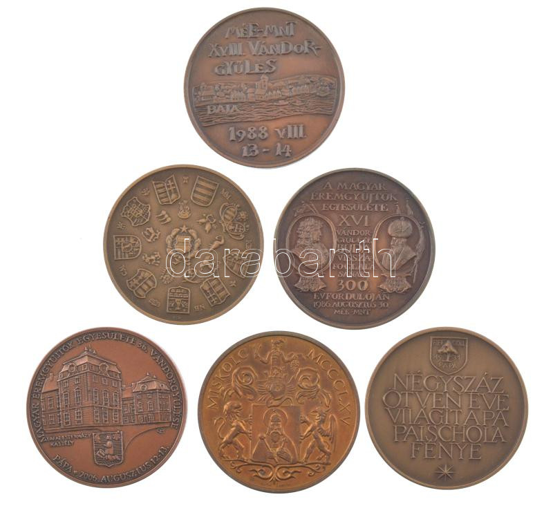 Leírás: 6 darabos bronz emlékérem tétel, közte "Türr István", "Buda visszafoglalásának 300. évfordulója", "Dr. Huszár Lajos az éremtan tudósa" (42mm) T:1-
