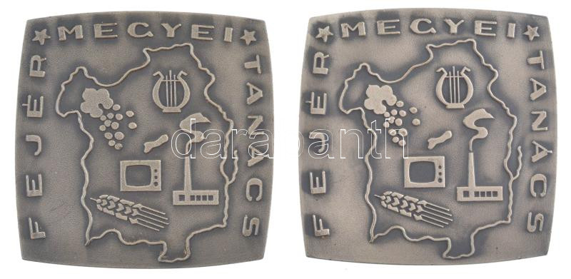 Leírás: ~1980. "Fejér megyei tanács" egyoldalas ezüstözött bronz emlékplakett (2x) (70x70mm) T:1-