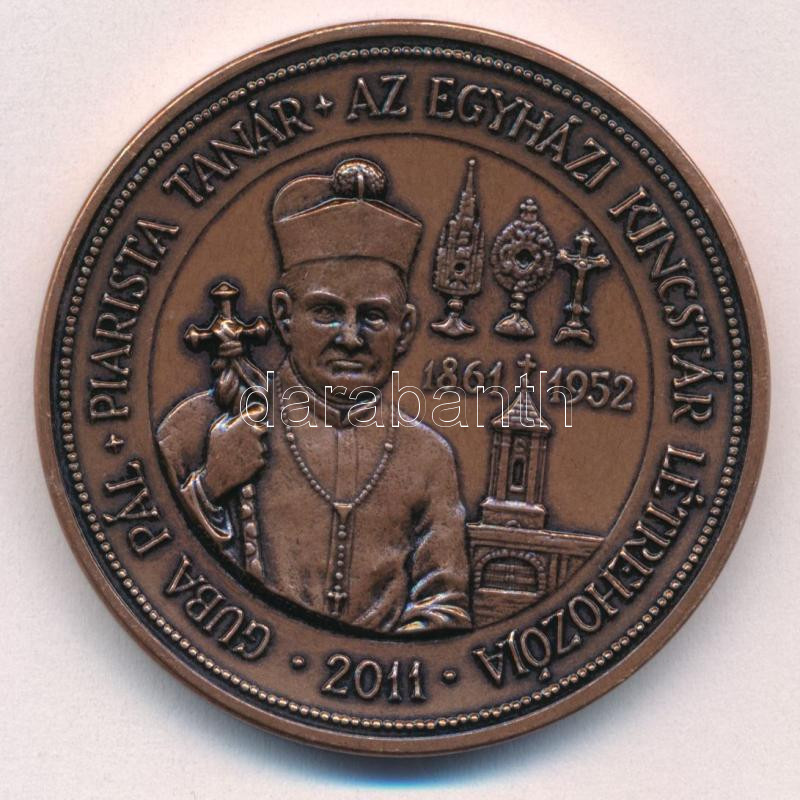 Szabó Imrefia Béla / Szabó Géza 2011. "Guba Pál - piarista tanár - az egyházi kincstár létrehozója - 2011 / Tisztelet az elődöknek - MÉE Gyöngyösi Csoport" kétoldalas bronz emlékérem kapszulában(42,5mm) T:1-