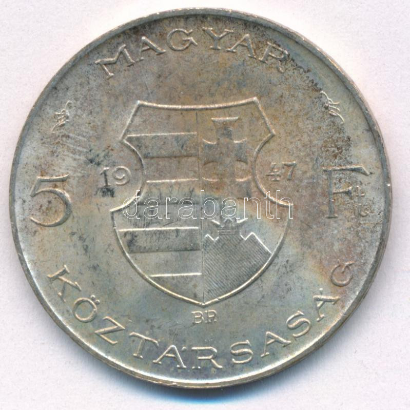 Leírás: 1947. 5Ft Ag "Kossuth" T:1- patina Adamo F8.1