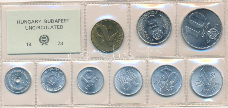 Leírás: 1973. 2f-10Ft (9xklf) érmés forgalmi sor fóliatokban T:1 patina