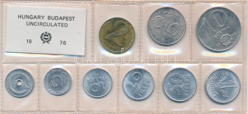 Leírás: 1976. 2f-10Ft (9xklf) érmés forgalmi sor fóliatokban T:1 kis patina