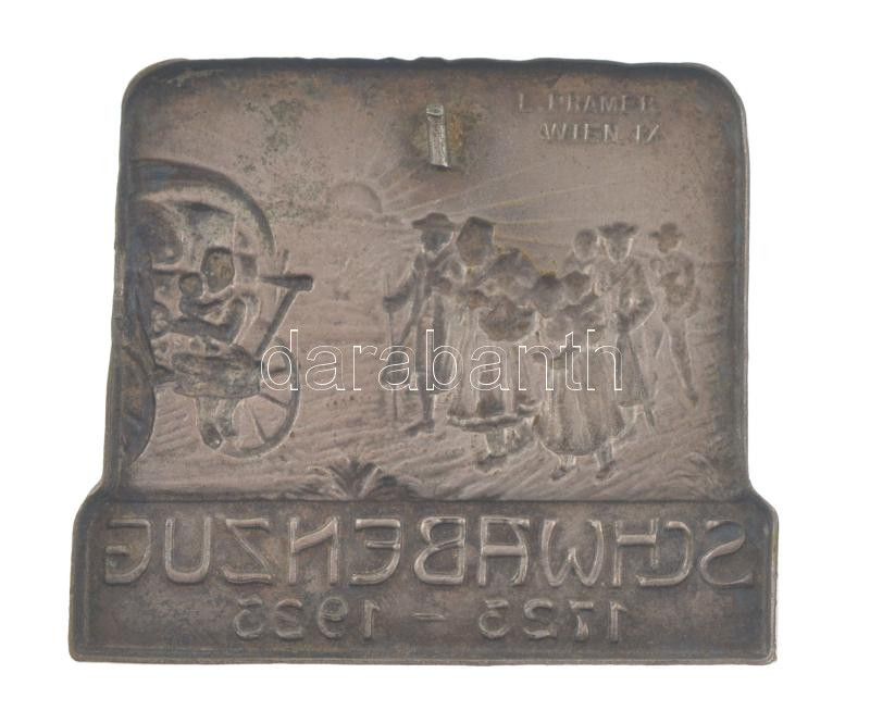 Ausztria 1923. "Svábvándorlás" ezüstözött bronzlemez kitűző, "L. Pramer Wien IX" gyártói jelzéssel (42x35mm) T:2 tű nélkül