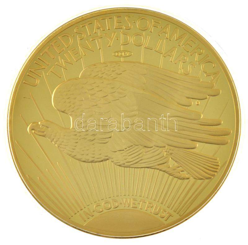 Amerikai Egyesült Államok DN aranyozott Cu emlékérem az 1933-as 20$ alapján, "COPY" jelzéssel (100mm) T:PP USA ND gold plated Cu commemorative medallion based on the 1933. 20 Dollars with "COPY" mark (100mm) C:PP