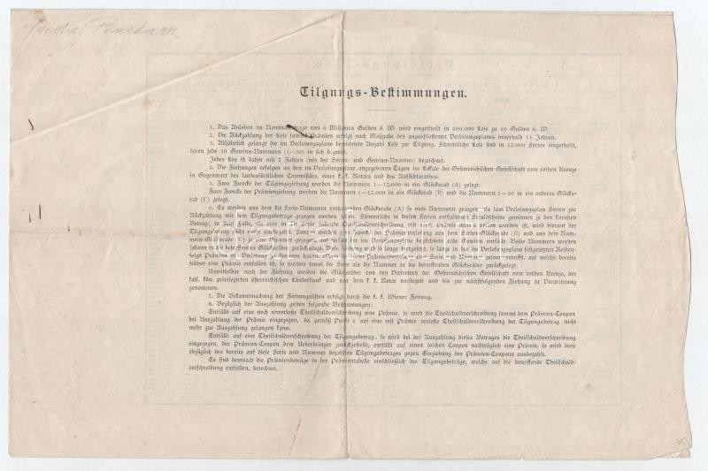 Ausztria 1884. "Vöröskereszt nyereménykötvény" 10G-ről szárazpecséttel T:III folt, firka