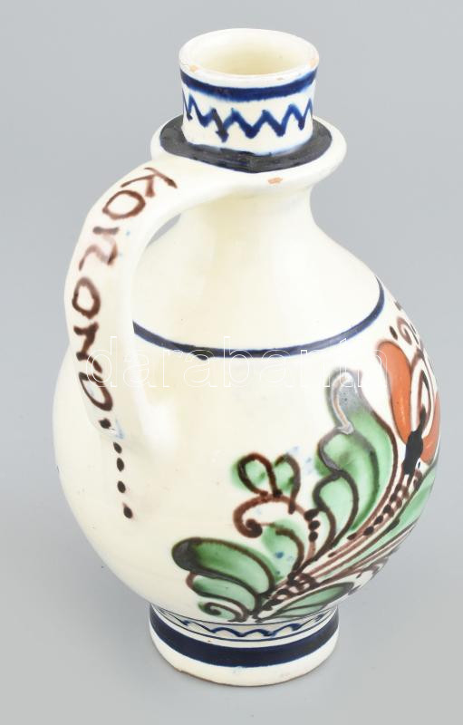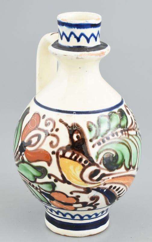 Leírás: Korondi kerámia korsó, kézzel festett, jelzés nélkül, lepattanásokkal, m: 16,5 cm