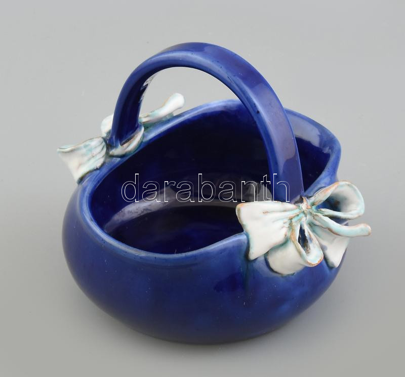 Leírás: Morvay Zsuzsa (1946-): , Füles kínáló, mázas kerámia, jelzett, hibátlan, d: 14 cm