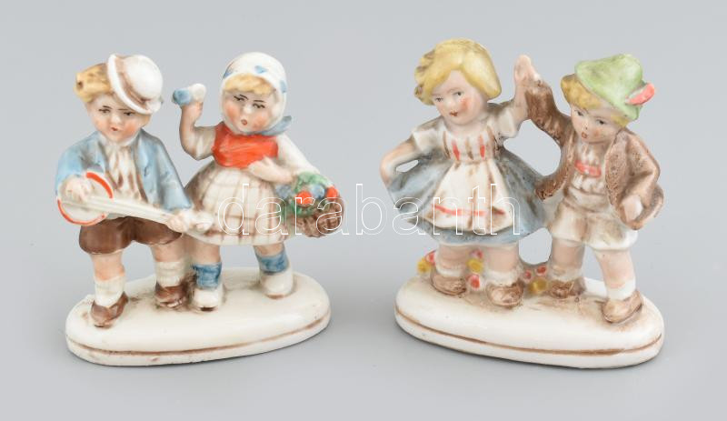 Leírás: 2db német figura, kézzel festett porcelán, jelzett, kopott, m: 7,5 cm