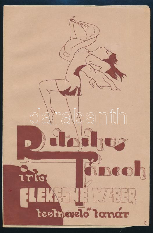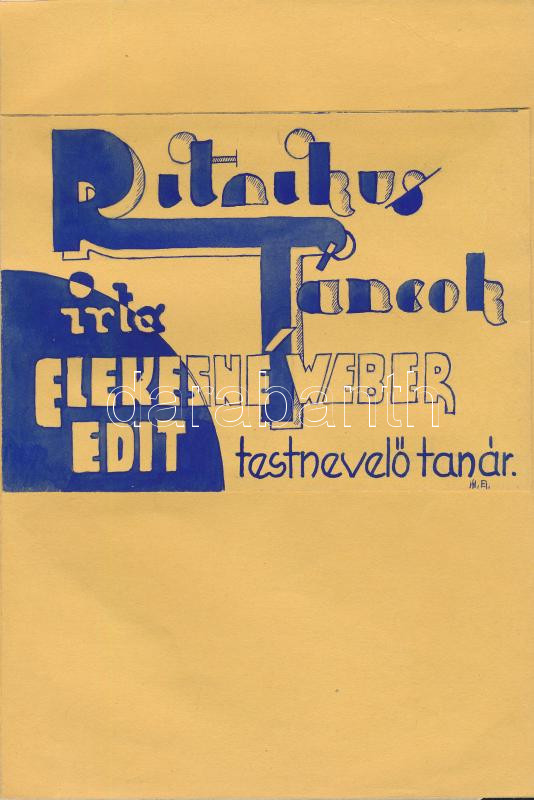 Olvashatatlan jelzéssel és jelzés nélkül: 10 db könyvborító terv Elekesné Weber Edit Ritmikus táncok c. könyvéhez, részben art deco stílusban. Tempera, akvarell, papír. A művek egy része feltehetően Weber Frida (1891-?) műve. 26x18 cm körüli méretben.