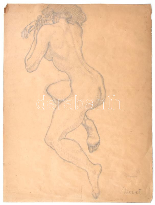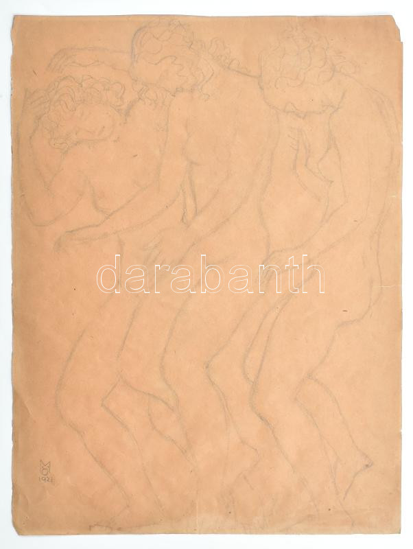 Moiret Ödön (1883-1966), kétoldalas mű: Női akt és női aktok. Ceruza, papír, mindkét oldalán jelzett, egyiken datált (1921). Lapszéli sérülésekkel. 42x32 cm