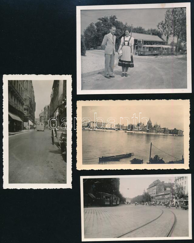 Leírás: 1932 Budapest, fogaskerekű, Országház, Károly király út, Váci utca, autóbusz, villamos, 4 db fotó, 11×6,5 és 9×11 cm