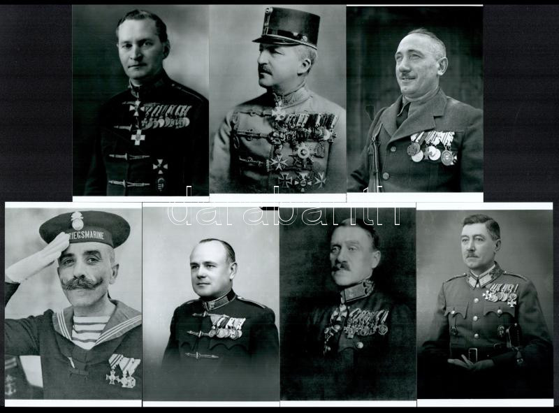 Hat katona és egy matróz mellén 65 kitüntetés, vegyes összeállítás, a felvételek eltérő időben készültek, de bizonyosan 1945 előtt, 7 db modern nagyítás, 15x10 cm