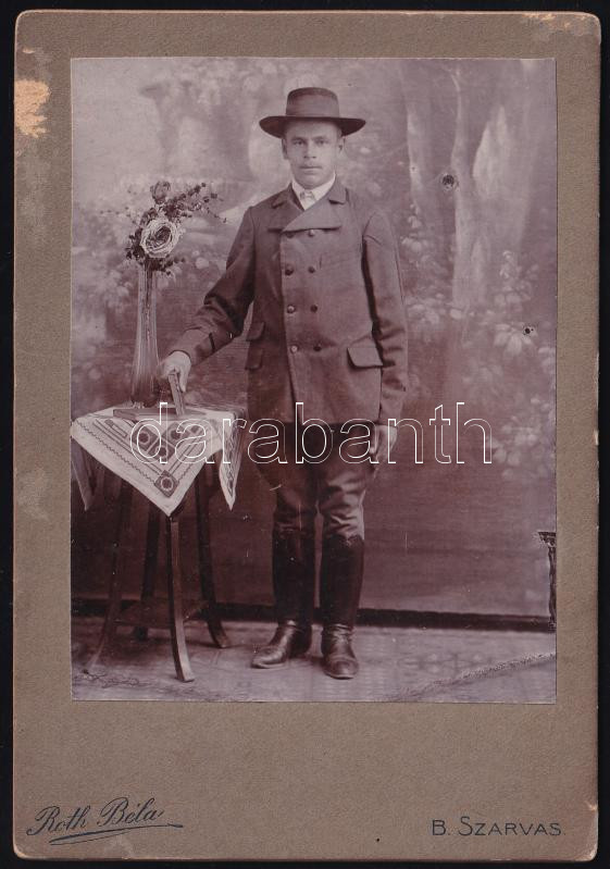 cca 1900 Férfi műtermi portréja, keményhátú fotó Róth Béla szarvasi mű... https://www.darabanth.com/hu/437-Gyorsarveres/437.0/Fotomuveszet/Foto~500023/cca-1900-Ferfi-mutermi-portreja-kemenyhatu-foto-Roth-Bela-szarvasi-mutermebol-serult~II2839749