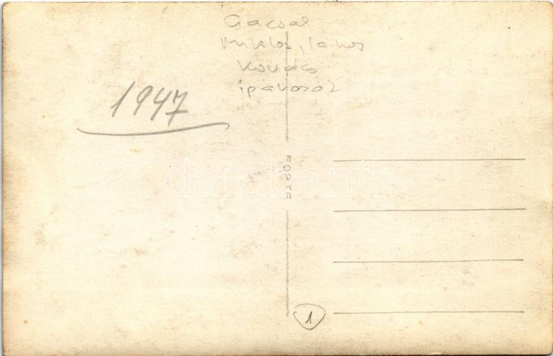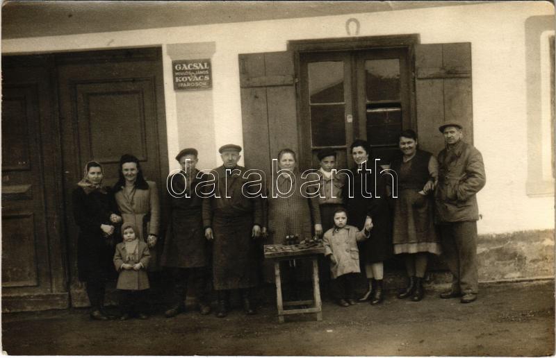 Gacsal Miklós és János kovács iparosok az üzletük előtt. photo https://www.darabanth.com/hu/437-Gyorsarveres/437.0/Kepeslapok/Egyenruhasok-foglalkozasok~1500028/Gacsal-Miklos-es-Janos-kovacs-iparosok-az-uzletuk-elott-photo~II2845039