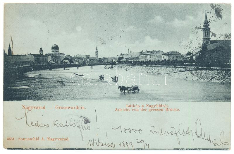 1899 (Vorläufer) Nagyvárad, Oradea; Látkép a Nagyhídról, kiapadt Körös, zsinagóga, este. Sonnenfeld A. kiadása / synagogue, dried up Cris river, night (EK)